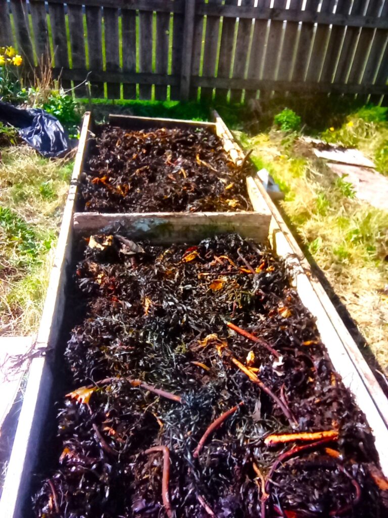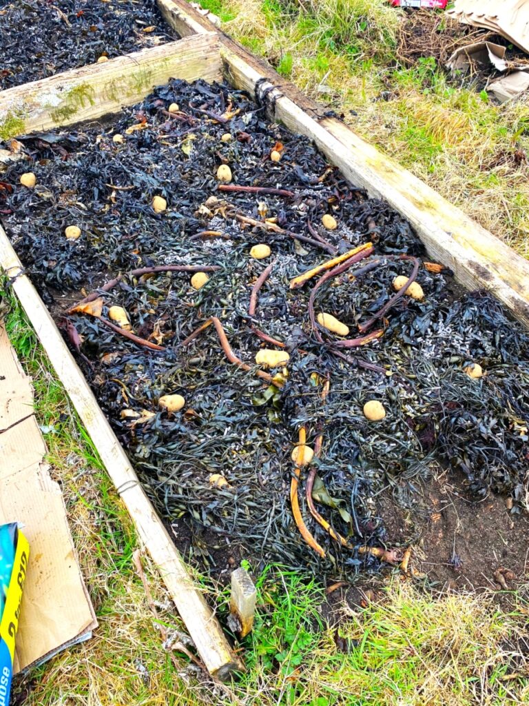 Na síolta scaradh amach ar an leaba feamainn, réití le clúdach